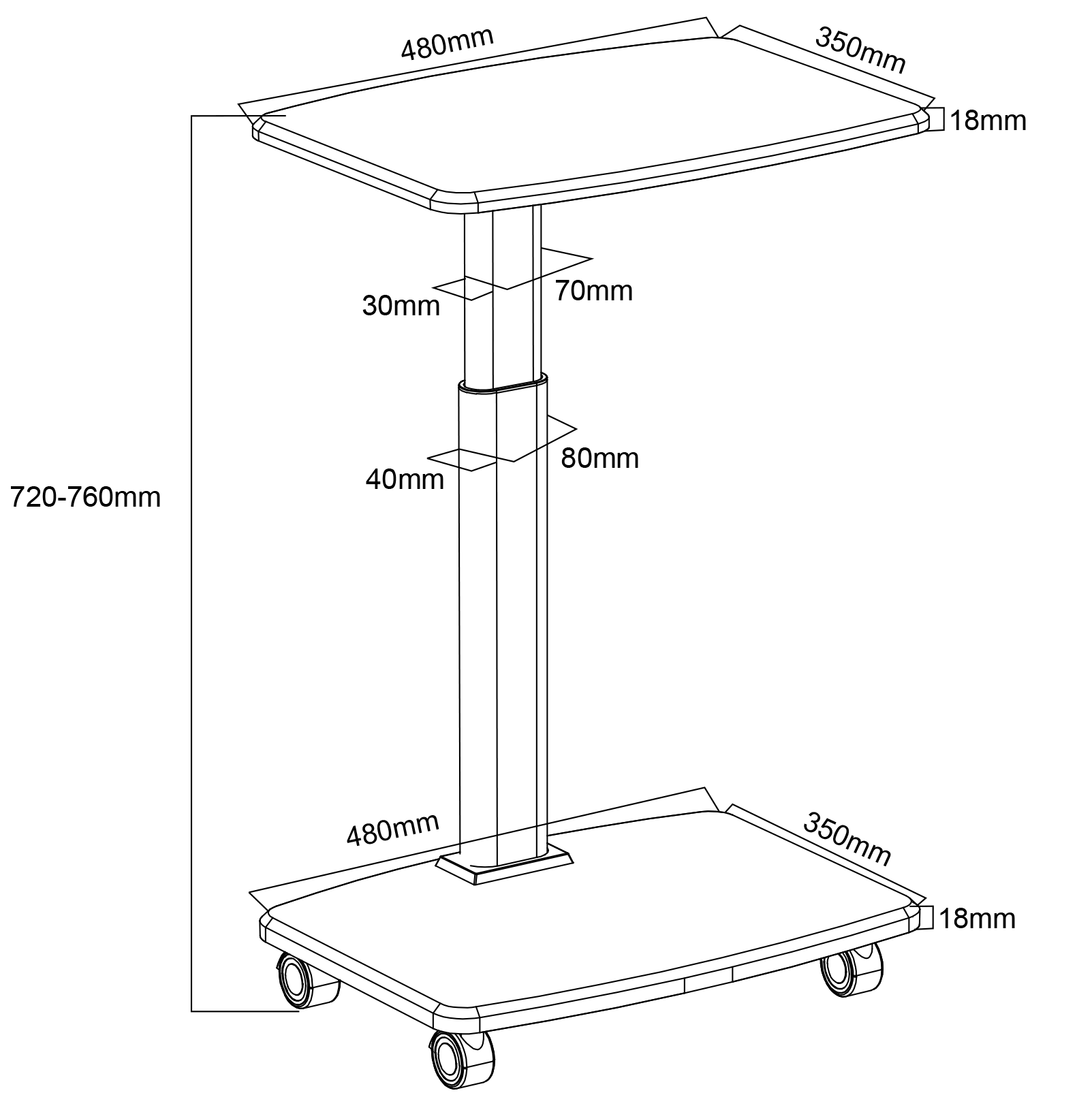 Brief Specifications: Size: 48x35x72&76cm, 50kg weight capacity